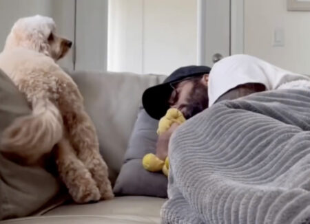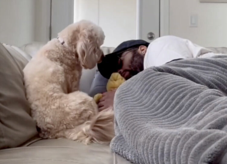 眠っている飼い主さんを見て