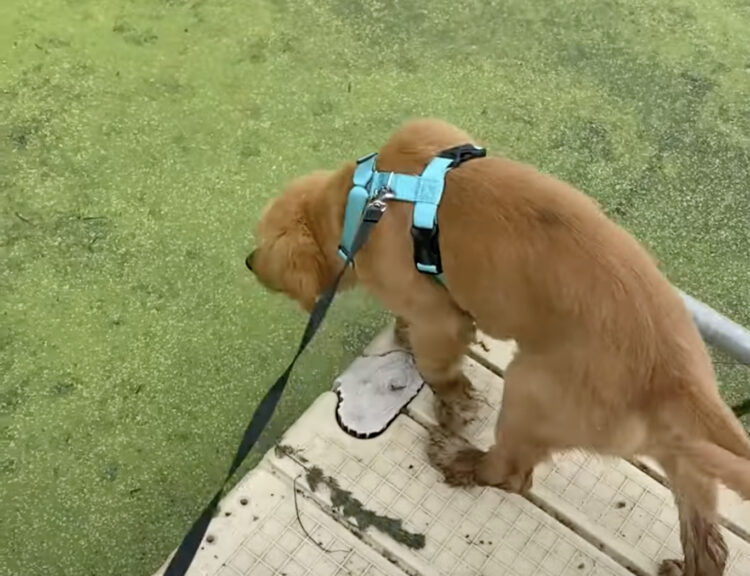 池に飛び込んでしまってびしょ濡れの子犬さん。