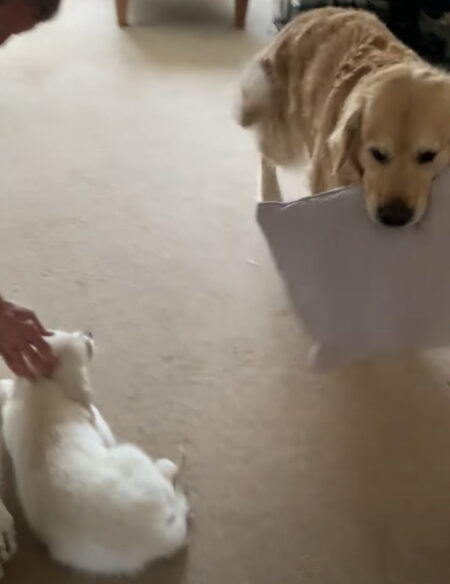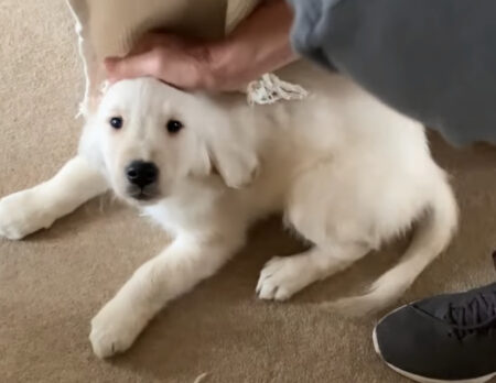 真っ白な毛並みの子犬さんと対面すると喜びが大爆発!