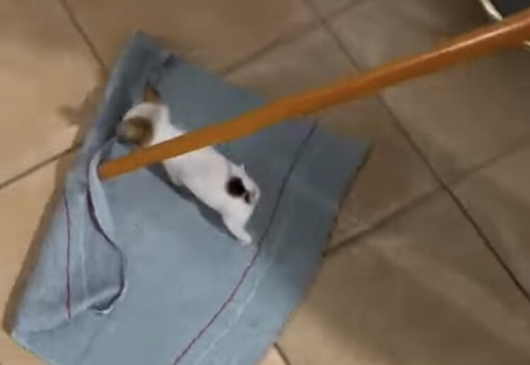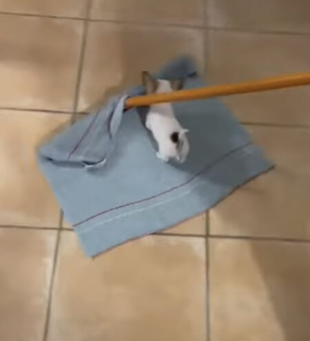 よく見ていると、モップに乗るタイミングを伺っていたりと
