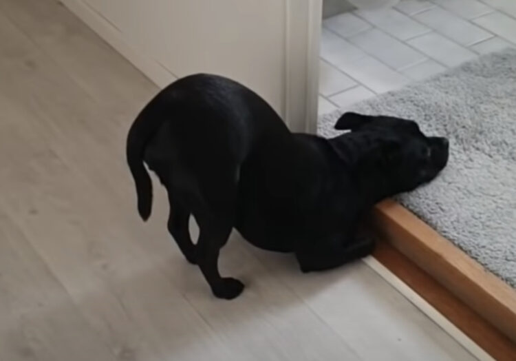 バスルームに入るのを禁止された犬、アゴだけで我慢…