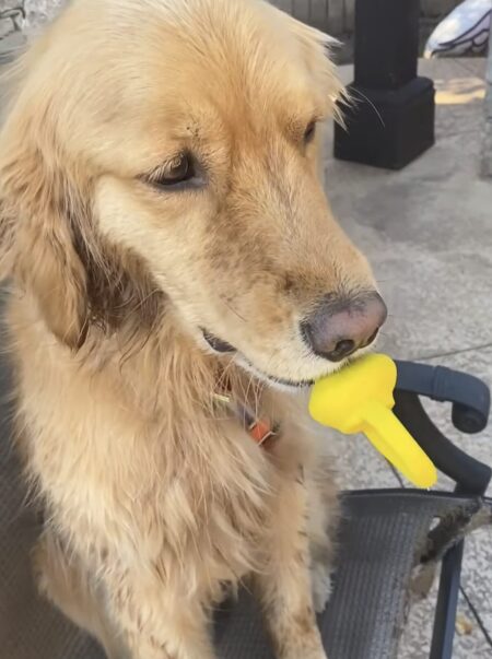 オモチャをもらったこちらの犬さん。