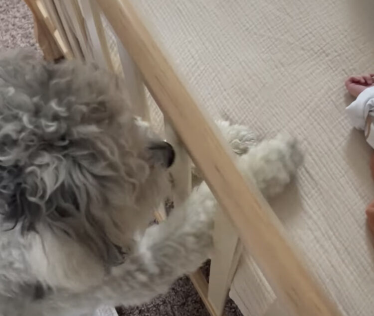 ちょっとだけでも赤ちゃんに触ってみたかった犬さん、