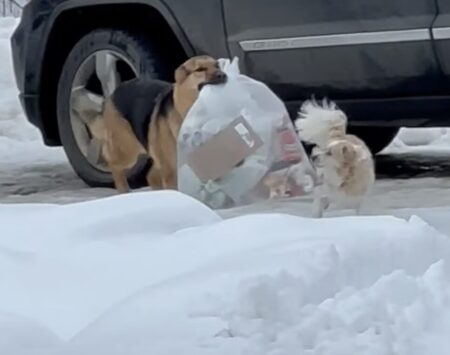 ゴミ出しをしてくれる犬さんに起こった爆笑ハプニング! 最後まで仕事は諦めないよ!