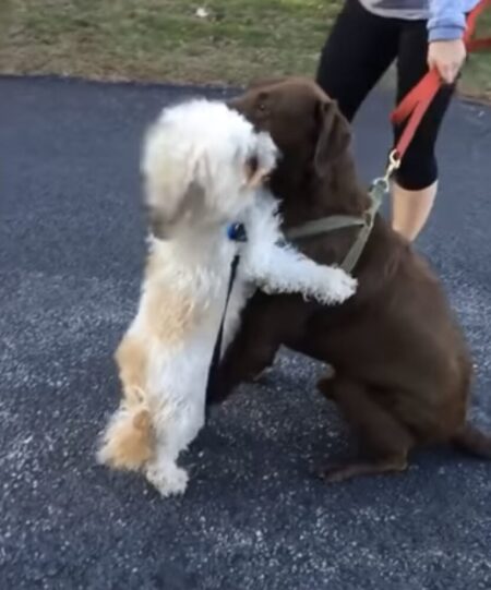 熱烈に犬同士でハグ!!