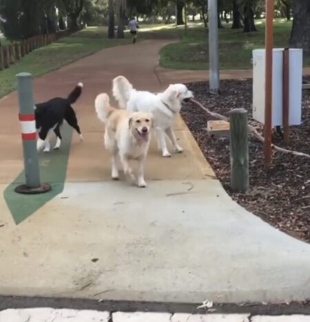 お散歩を楽しんでいる2匹の犬さん。