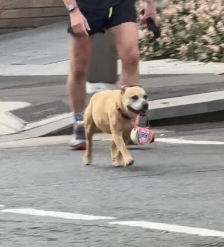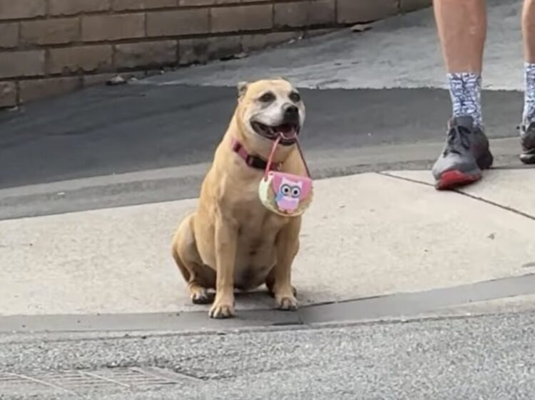 ポーチを持ってルンルンと歩く姿が
