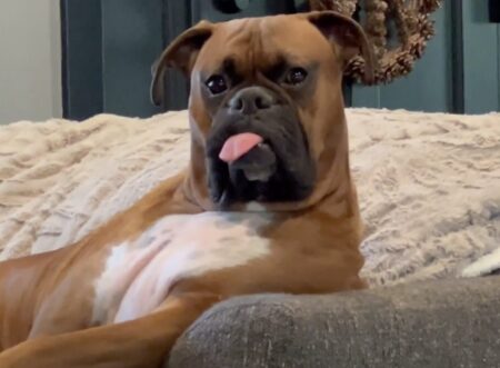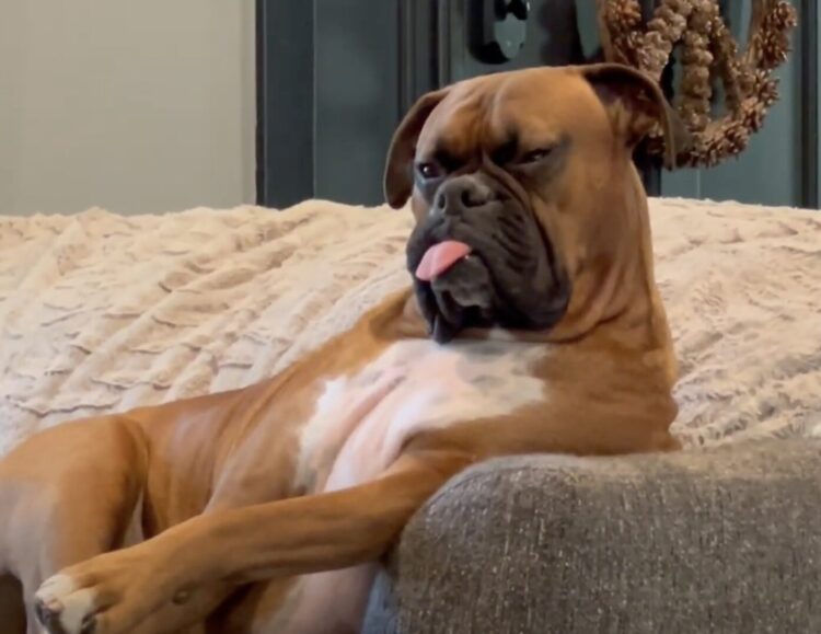 くつろぎ方が人間っぽい犬さん! お気に入りのソファでまったり♪