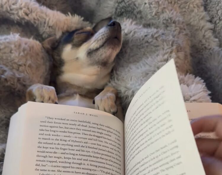 お腹に本を乗せられちゃってるよ?
