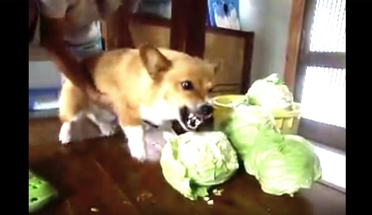 !!!?キャベツに喰らい付く犬を止めてみたら… 衝撃。