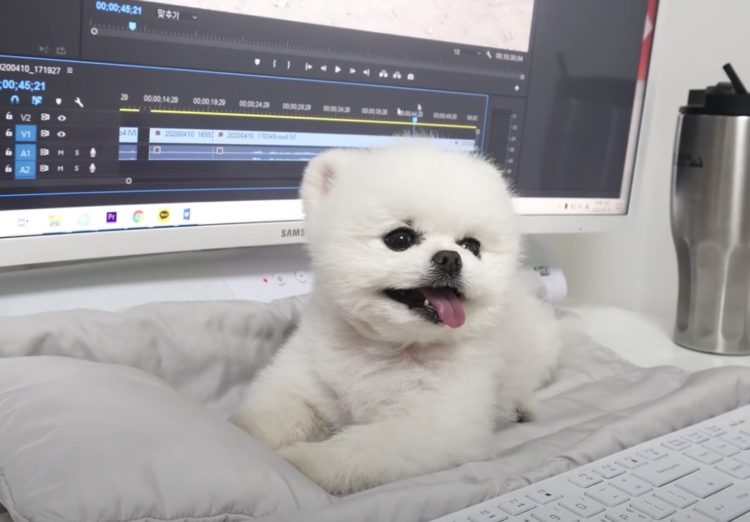 「まだお仕事する? それより遊ぼうよ〜!」可愛いすぎるポメラニアンの妨害。
