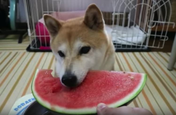 夏にはスイカ!シャリシャリ美味しそうに食べる柴犬。