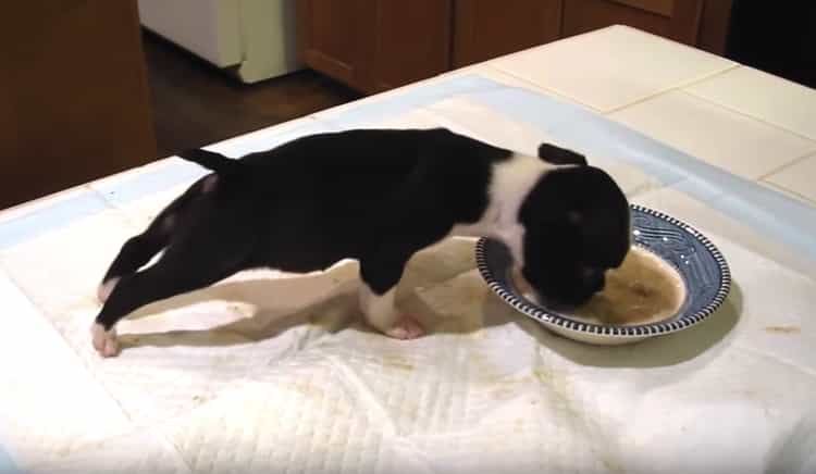 なぜか後ろにさがっちゃう?!子犬たち、初めてのごはんタイム。