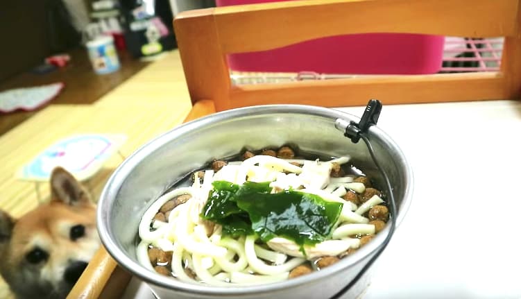 犬も食べるの?「鶏わかめおうどん」ちゅるちゅるり〜