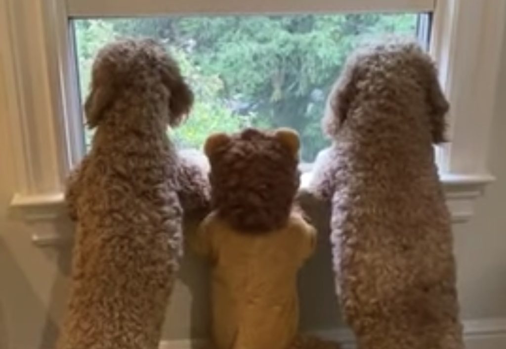 モコモコでぬいぐるみのような ふわふわ犬さんたち。 窓辺に手をかけて、2本足で立ち上がり 外の景色を眺めています。 その姿だけでも可愛らしいんですが 2匹の犬さんの間にいるのは ライオンの格好をした子ども! 愛犬の真似っこをしているのかな? 同じ... -