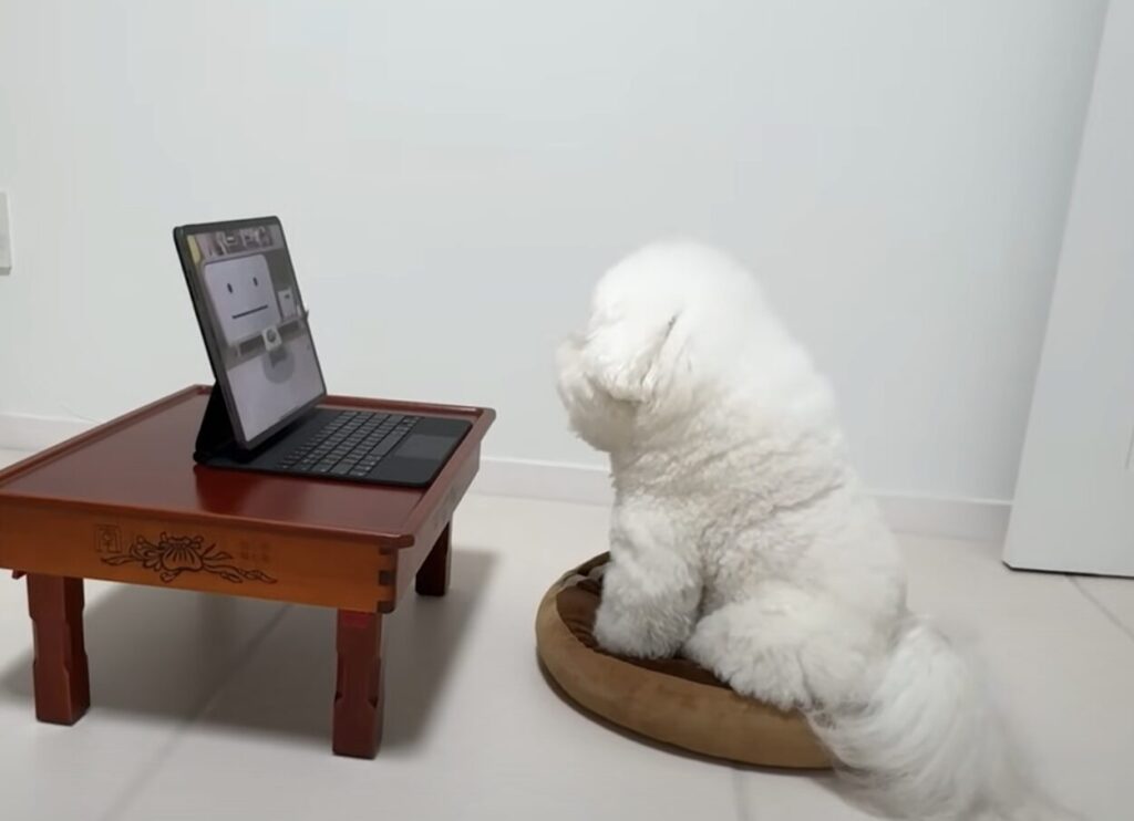 こちらは動画を見るのが大好きな ビションフリーゼのtotoくん。 普段からパソコンでアニメや YouTubeを見るのが大好きなのです。 この日totoくんが見ていたのはライブ配信! その映像はtotoくんのお部屋の、 いま見ているパソコンのすぐ近くだ! しかし画... -