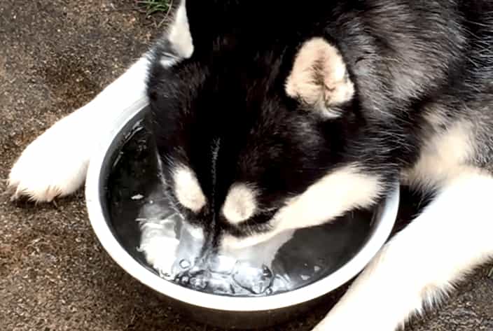 ブクブク〜!水で遊びに夢中のハスキー犬。