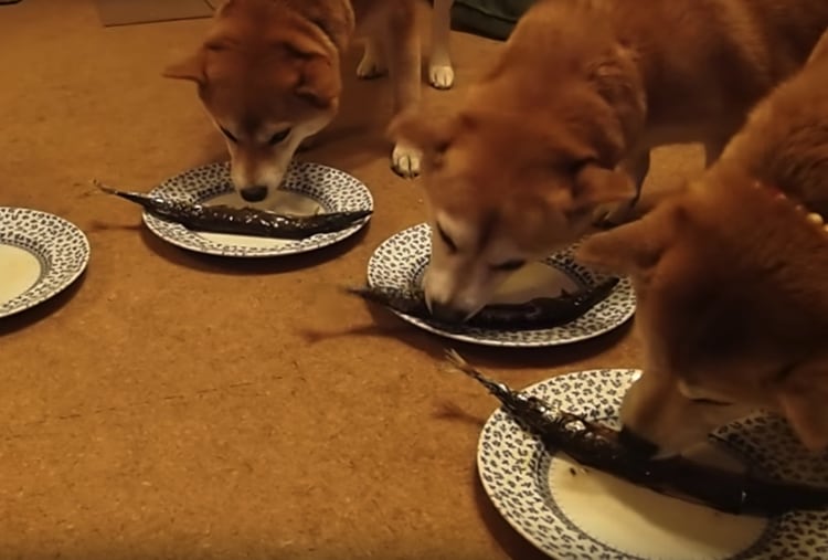 秋はやっぱりこれ!旬の秋刀魚を堪能する柴犬たち。