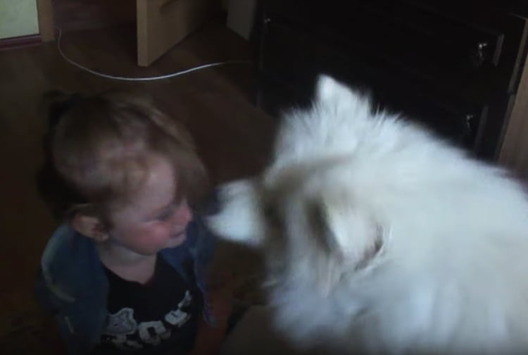 モコモコ真っ白のワンコさん 女の子のほっぺをちょん! とくすぐると きゃははは! っと大喜び。 何度もなんども付き合ってあげる 優しいワンコさんなのでした。
