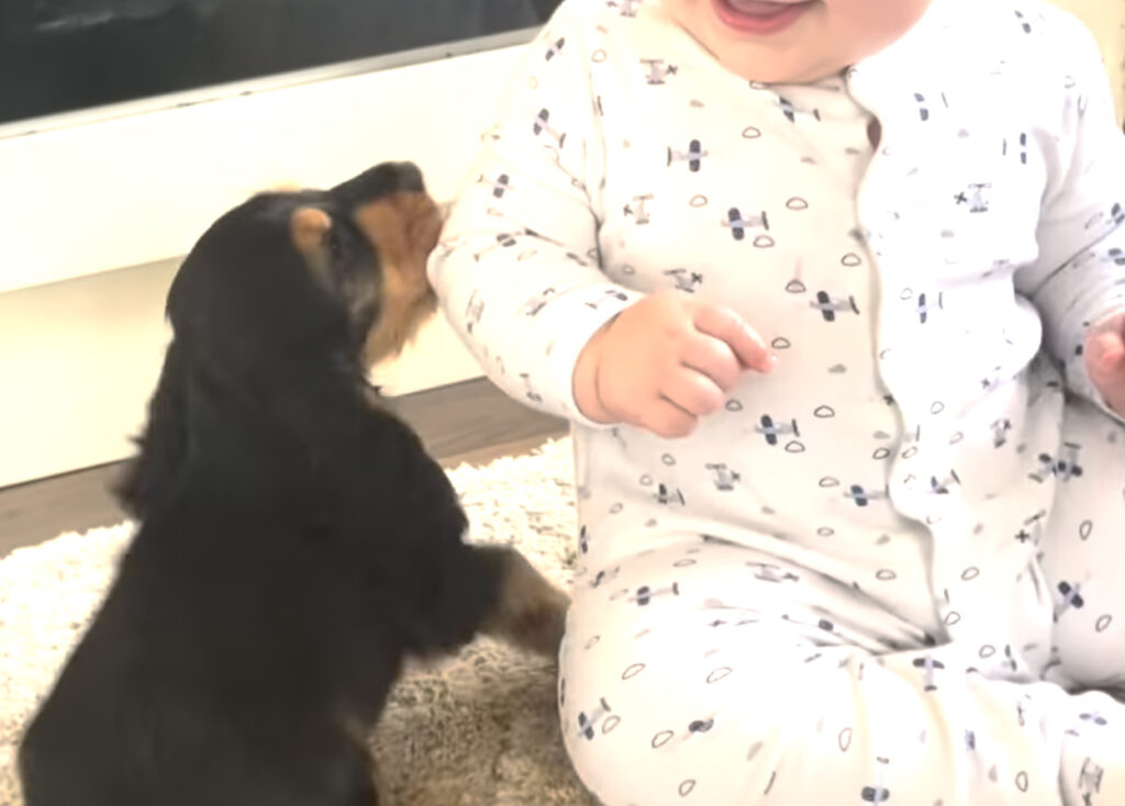 初めまして赤ちゃん♪ 初対面なのにすぐ仲良くなる子犬さん。