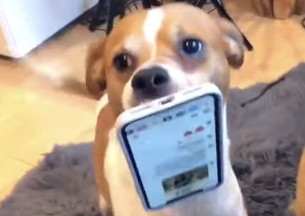 「僕の新しいおもちゃにする♪」スマホを返してくれないワンコ。