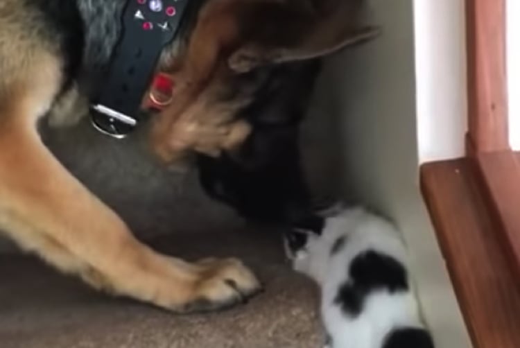 ど、ど、どうしよう?子猫のお父さんになった犬。
