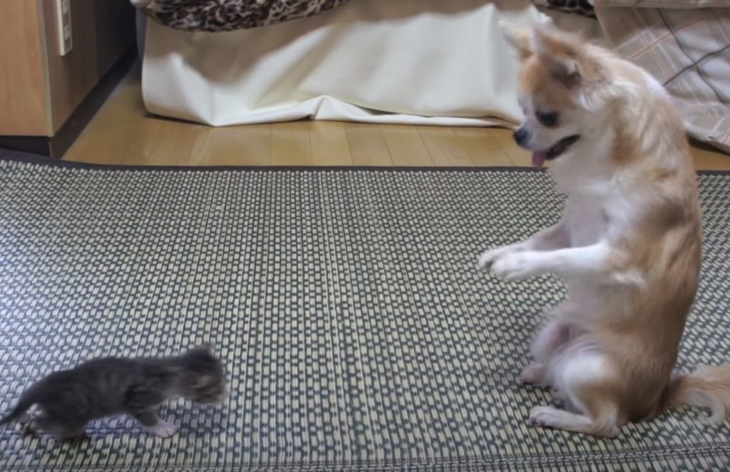 どっちも可愛い!チワワと子猫のボクシング対決。