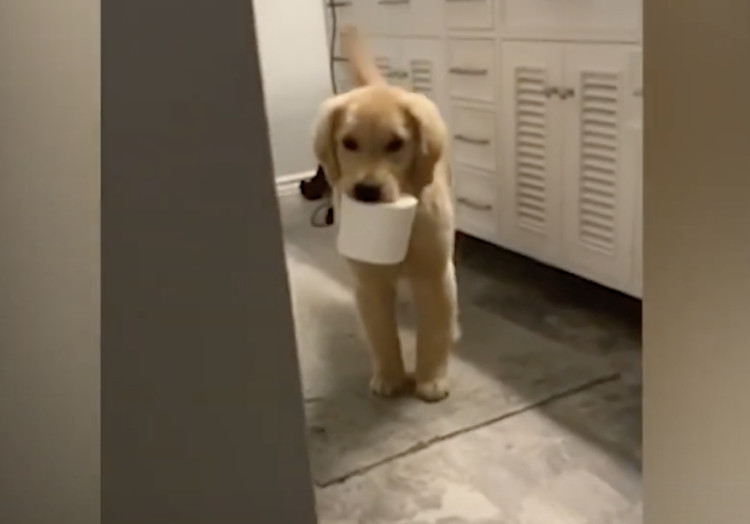 「欲しいのはコレ?」トイレットペーパーが無い時に子犬がやってきて…