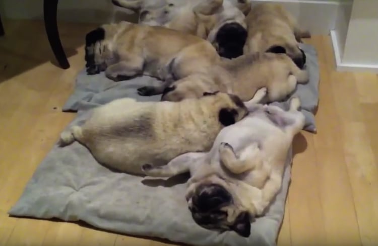 お布団の上にぎゅうぎゅう〜っと 集まって眠るパグさんたち。 遠くから見るとなんだか牡蠣みたい? 無防備な寝顔、まるだしのお腹… あつまると可愛さ百倍なのでした。