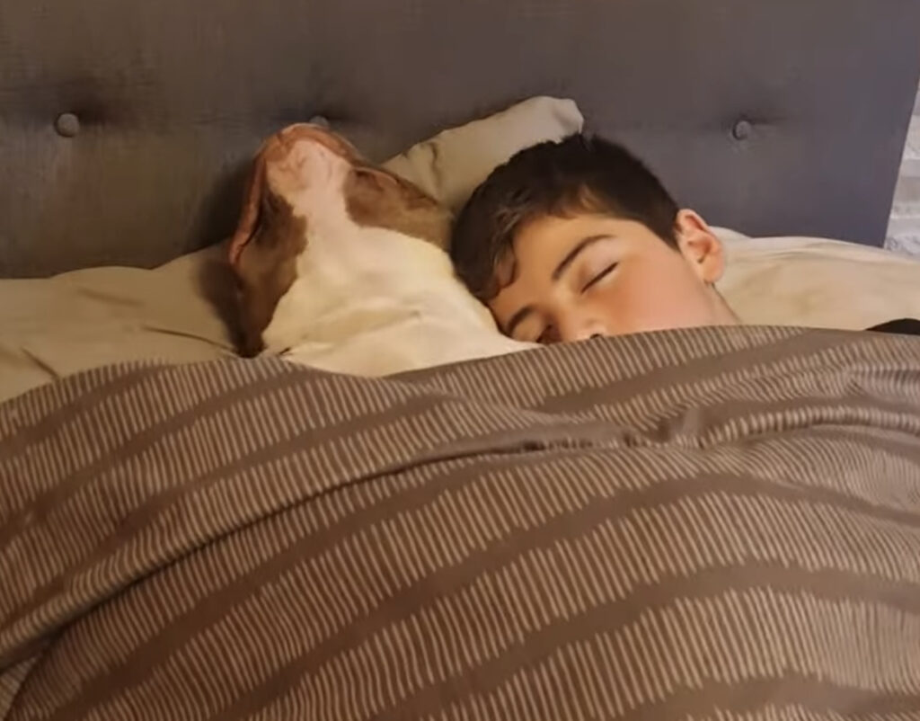 一日が終わってそろそろ寝る時間。 撮影者さんがカメラを持って寝室に向かうと 愛犬と男の子の可愛い姿が見られました♪ 一緒にベッドの中にもぐりこんで 毛布を肩までかけて仲よく兄弟のようにスヤスヤ。 ふたりとも、とっても幸せそうな寝顔♪ 毛布をちょ... -