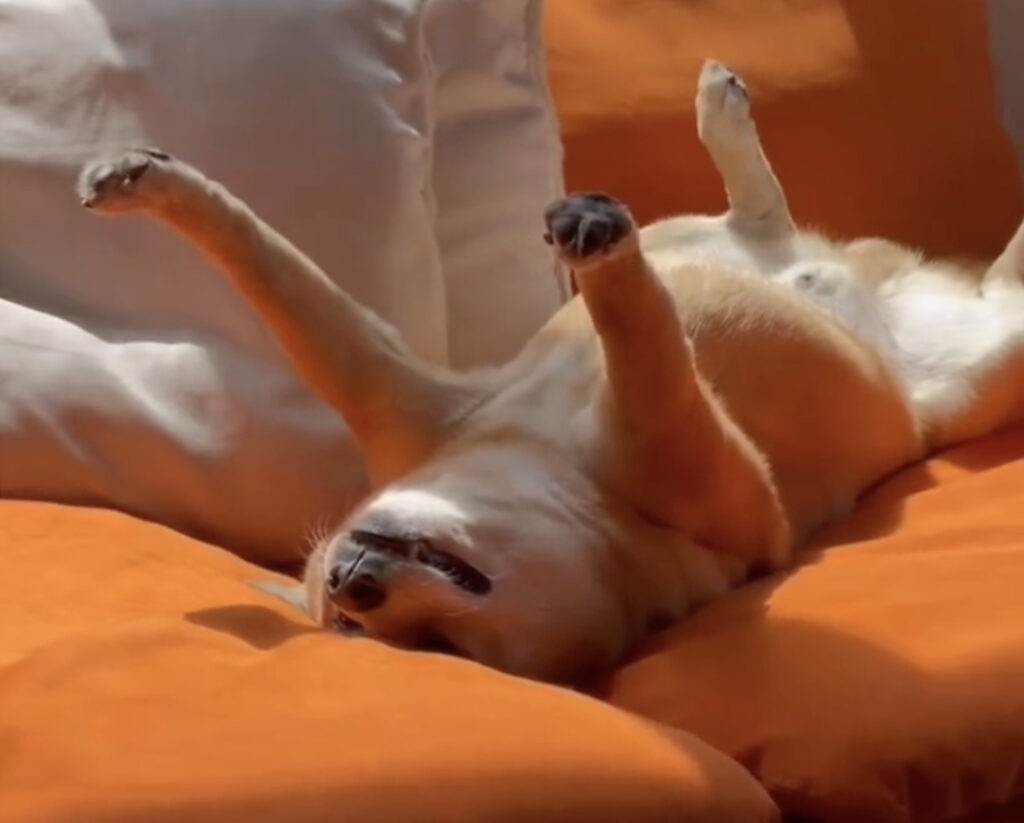 全身にポカポカを! 犬さん、お昼寝のポーズが斬新すぎる。