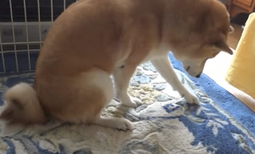 柴犬「寝る前の準備は大変なの!」寝床つくりに忙しいワンコ。