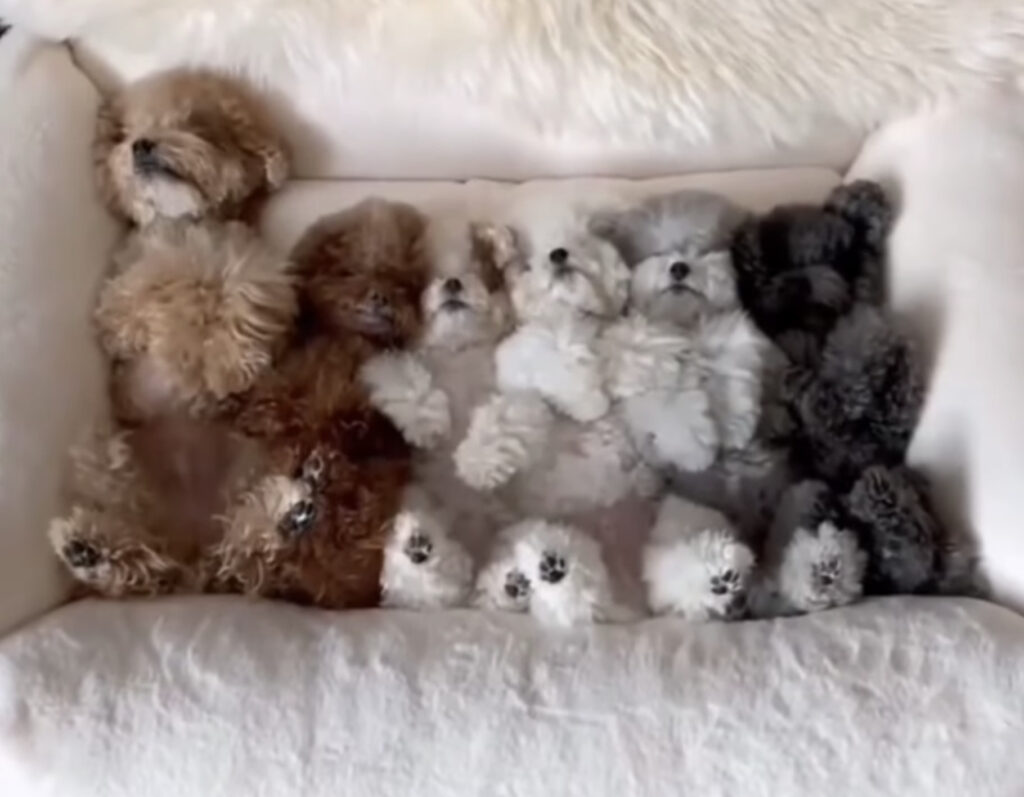 集合して3秒でおやすみ? 一列に並ぶ可愛い子犬たち♪