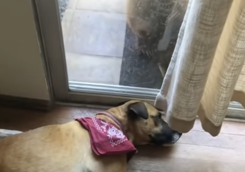 お庭に出るガラスの扉の前で スヤスヤ眠っていた犬さん。 犬「いっぱい寝たなぁ、ん?何か気配が...」と 何かを察知して目を覚ますと、 なんと、扉の向こうに大きなクマが!! 庭に立てている大きな柵を越えて、 クマが民家にやって来てしまったのです。 ... -