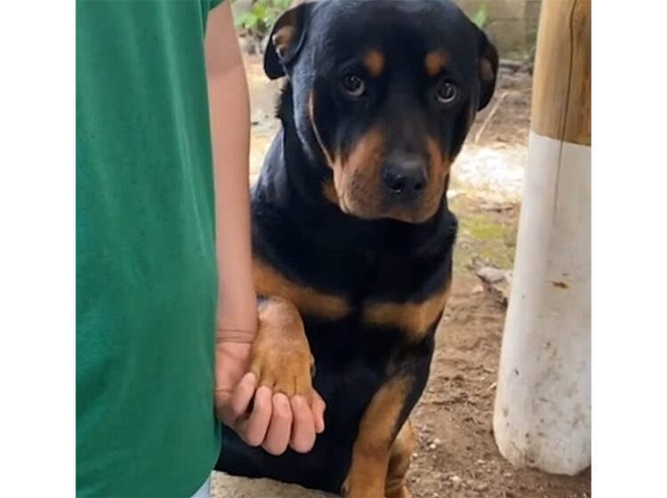 不安げにそわそわ、 なんだか落ち着かない様子の ロットワイラーの子犬さん。 何か心配なことがあるのかな。 気持ちを落ち着かせようと、 取った行動がとっても可愛いらしいのです。 隣に立っている子どもの手を握るようにぎゅっ! 子どもも子犬さんの不安... -