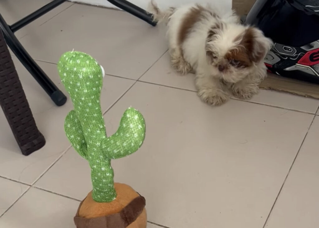 終わらない戦い…! 小型犬vs声に反応するオモチャ