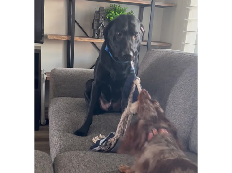 犬さん同士の綱引き勝負! 想像していなかった結果になったぞ。
