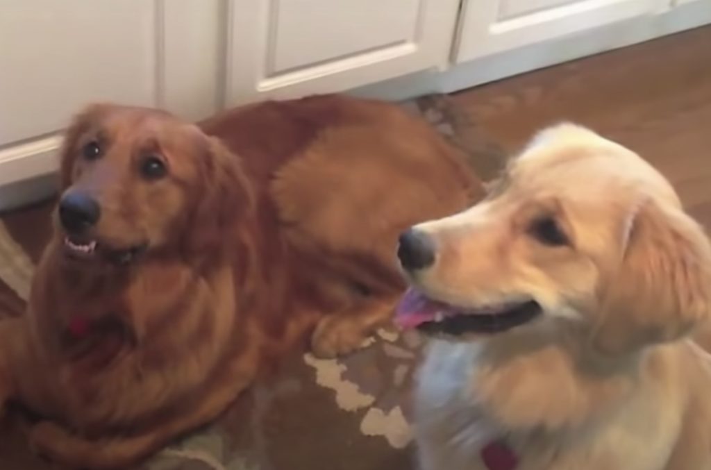 おやつを楽しみに待っている2匹の犬さん。 飼い主さんが「口でキャッチするんだよ?」と おやつをポーンと上に投げます。 すると、左の犬さんは伏せをした体勢でも 余裕でキャッチしてモグモグ! さぁ、今度は右側の子の番だよ〜!! 同じようにポーンと投...