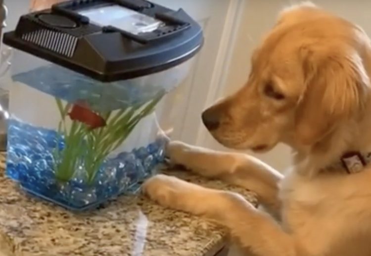 愛おしそうに水槽を眺める犬さんが可愛すぎるのでした。
