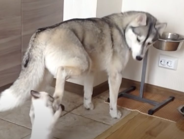 早速食事を始めるハスキー犬さんでしたが