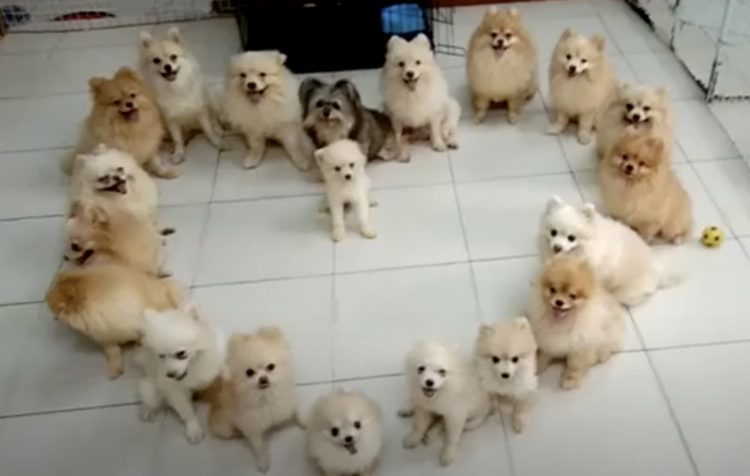 可愛い集合写真!犬さんたちでハートを作ってみた。