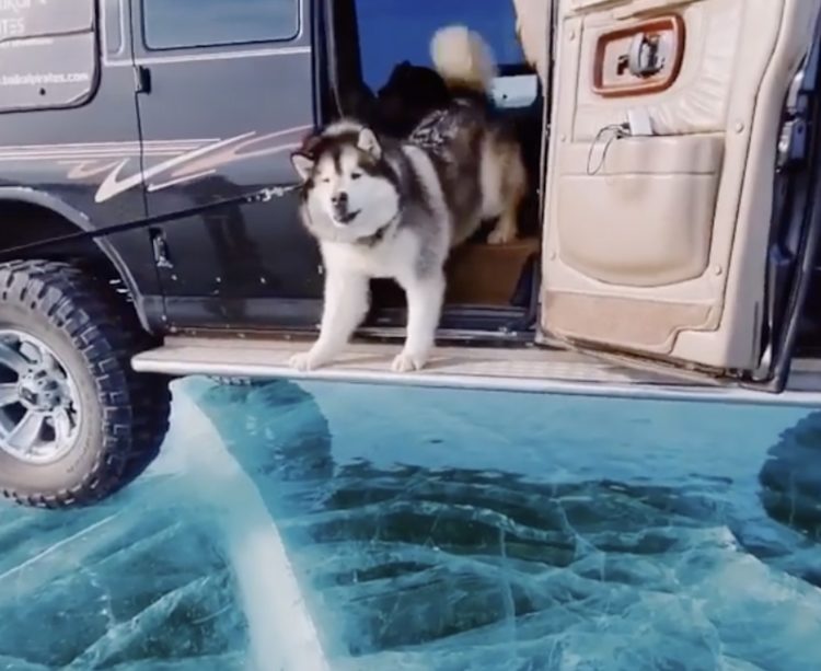 犬「氷?割れちゃうでしょ!」凍った世界一の湖、だけど水にしか見えなくて…