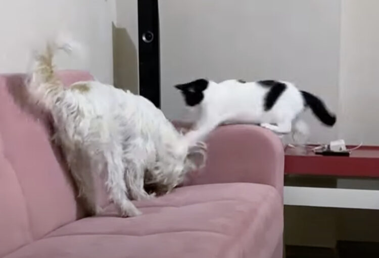 怒られちゃった〜…とすぐに動きを止める犬さん。
