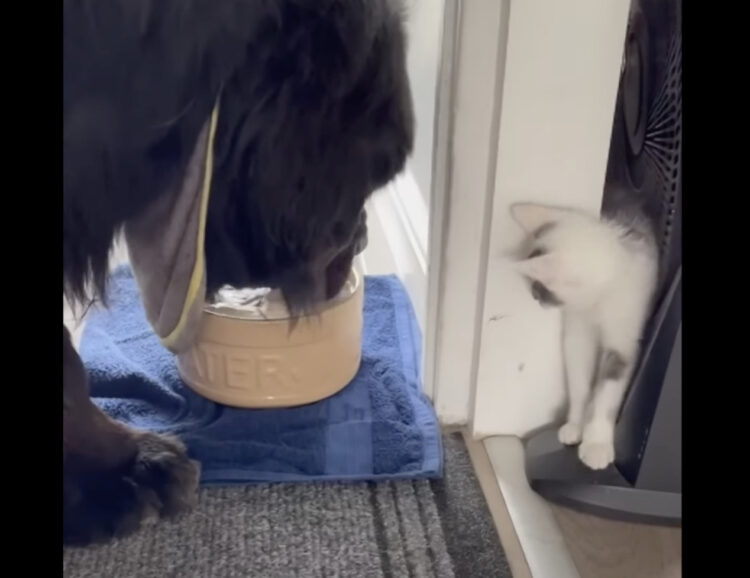 動き出すと思っていなかった子猫が驚いて