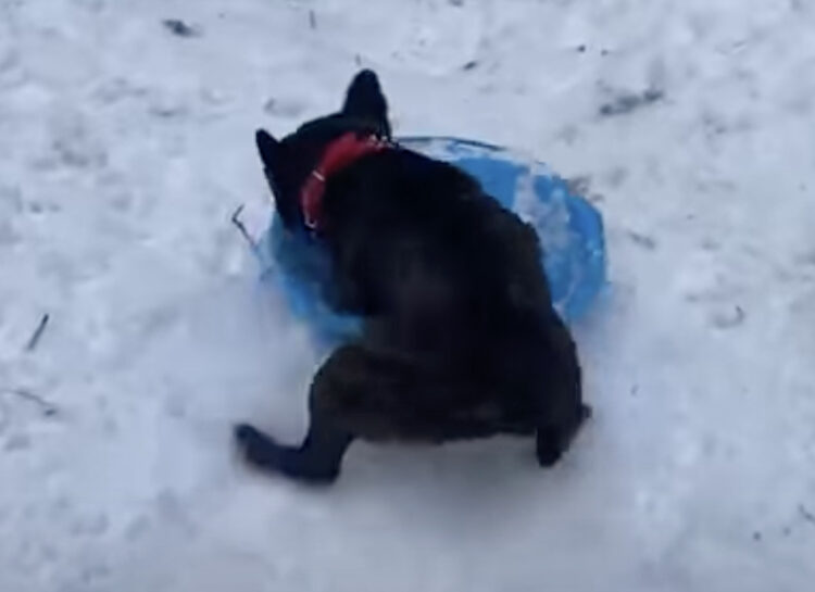 姿が見えなくなるまで滑っていっちゃう犬さん。