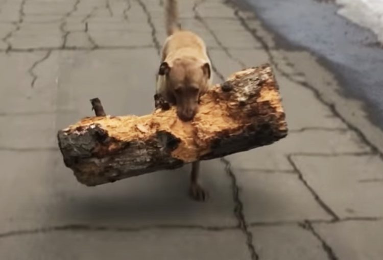 木の棒が大好きな犬さん、張り切りすぎて丸太を持って来ちゃった!