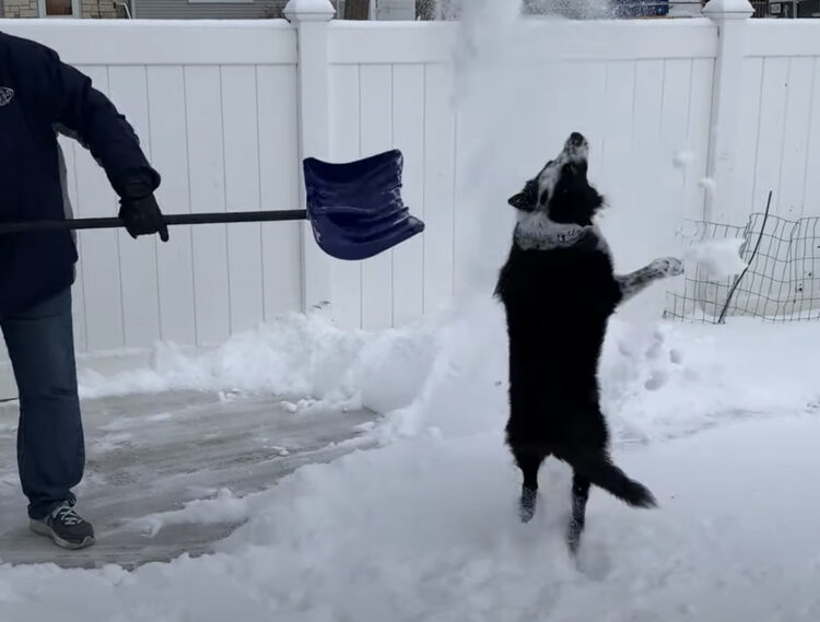 とくに飼い主さんが雪かきをしていると