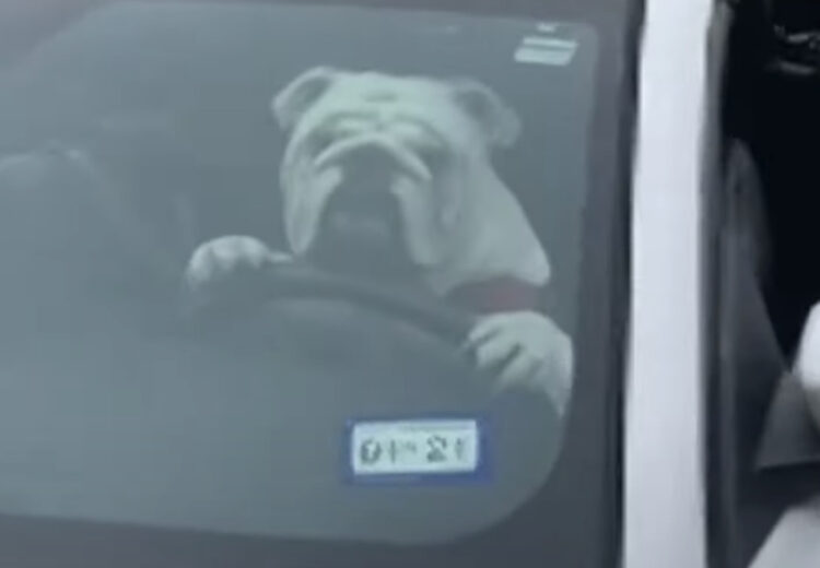 ハンドルを握って運転席で待つ犬さん。