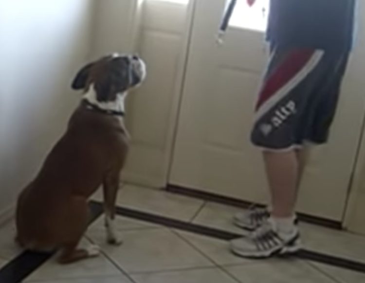 玄関に走って行きドアの前で
