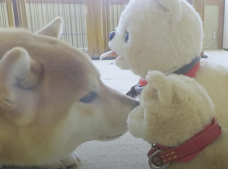 すぐにぬいぐるみの匂いをクンクンするまめ君。